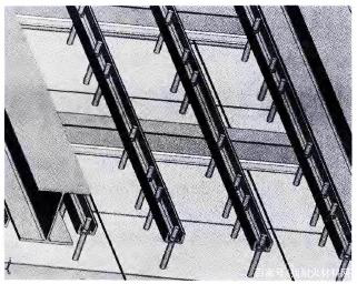 第三種是預(yù)制件上的錨固件掛在頂部工字鋼上,見圖3。此方法的特點(diǎn)是安裝和檢修極為方便,而且連接牢固。