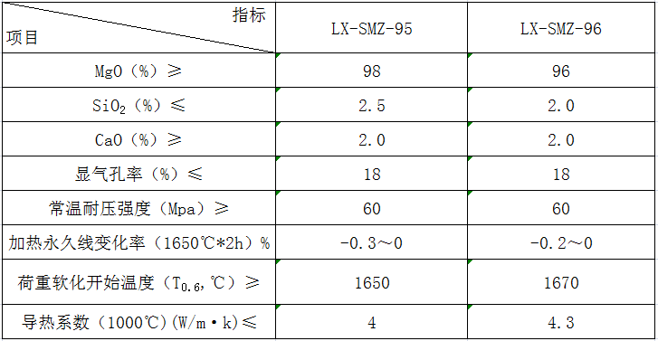 產品特點:是踐行耐火材料,該制品耐火度高,對鐵的氧化物、堿性爐渣及高鈣溶劑具有良好的抗侵蝕性。廣泛應用于鋼鐵工業的煉鋼爐襯、鐵合金爐、混鐵爐、有色冶金工業爐,建材工業的石灰窯,玻璃工業的蓄熱室格子體換熱器,耐材工業的隧道窯及高溫煅燒窯等 。