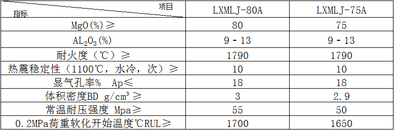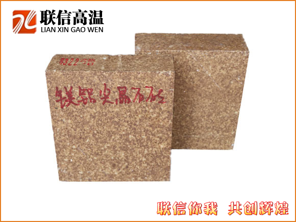 鎂鋁尖晶石磚是以方鎂石及尖晶石為主要礦物的高檔堿性耐火材料、高溫燒結而成,同時添加特定礦化劑使制品晶相顆粒之間直接結合。具有強度高、熱震穩定性優良、抗化學侵蝕能力強等特點。主要用于水泥回轉窯上下過渡帶及要求耐高溫同時耐熱震的熱工窯爐設備上。